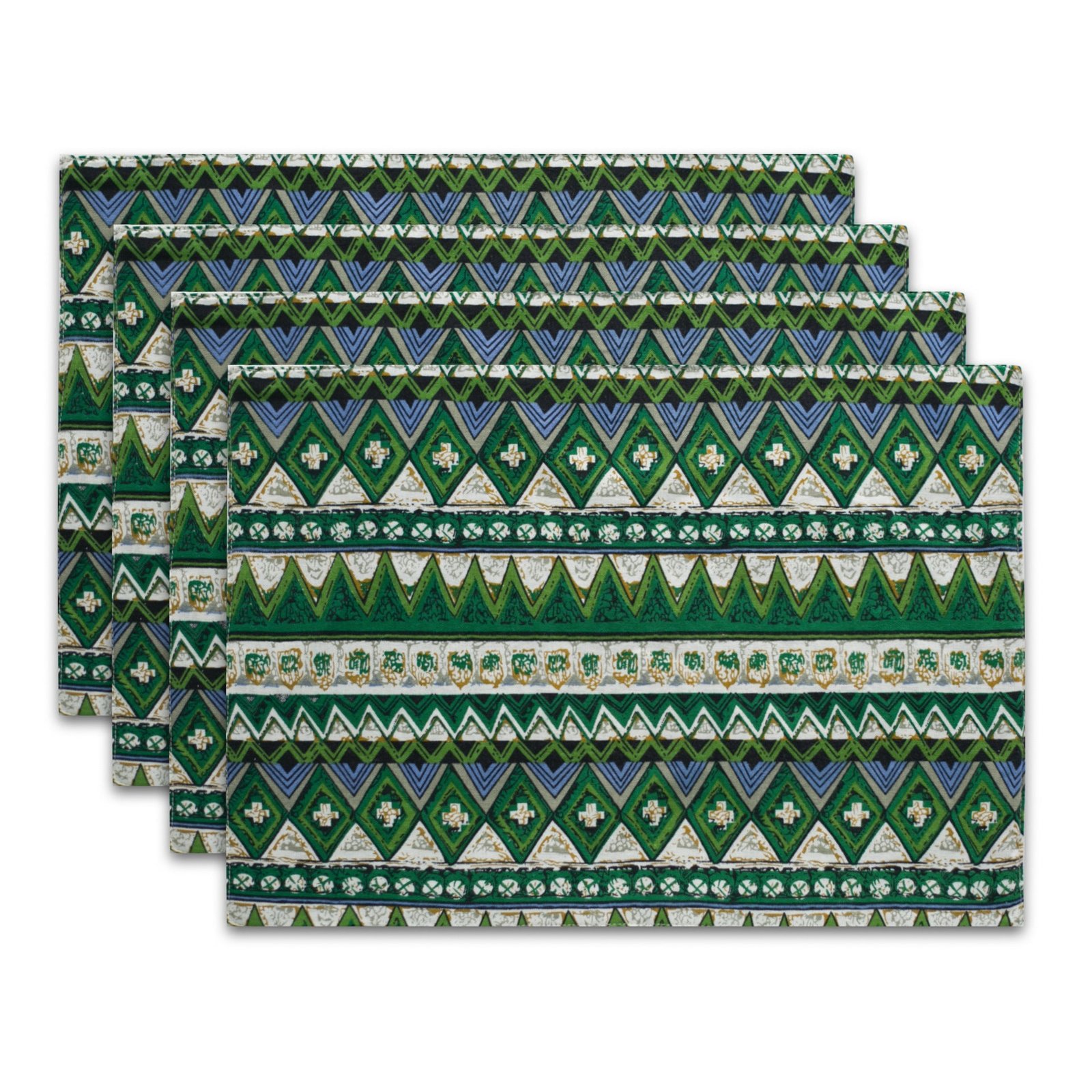 Bohemian printed placemats featuring a durable double-layer rolled edge, crafted from a cotton-linen blend for natural texture and easy care. Rectangular mats measure 32 x 45 cm, ideal for dining tables and living spaces. Customization options are available.