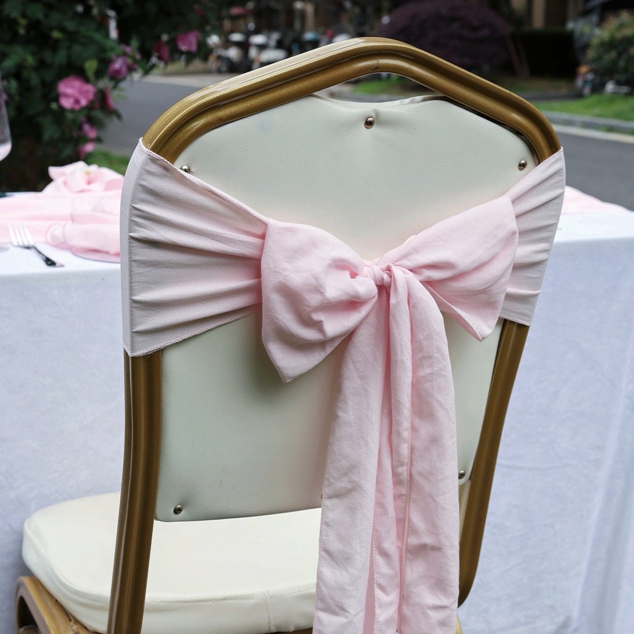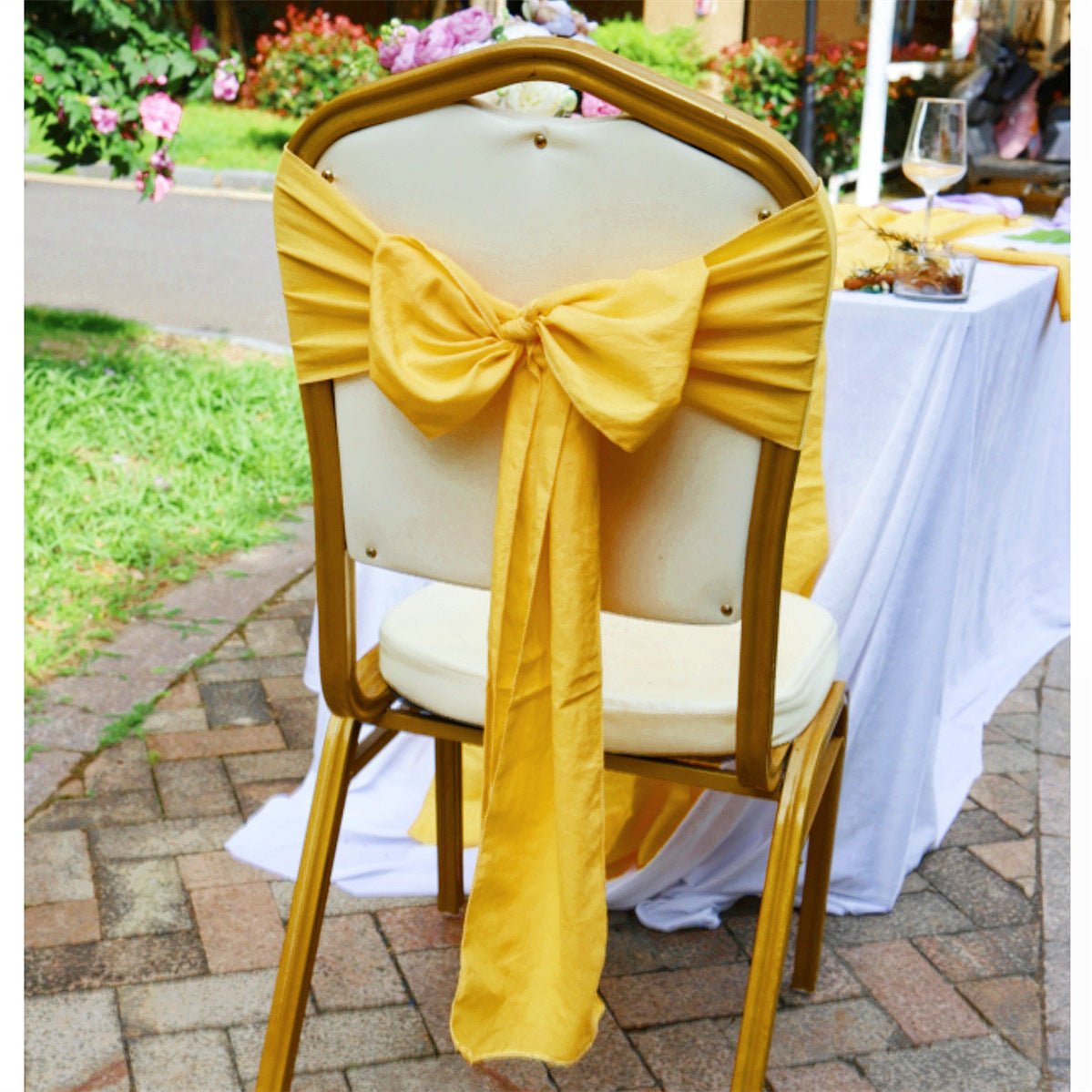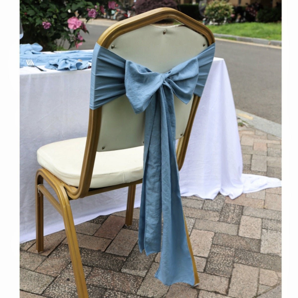 Style & Shape: Rectangular chair back cover designed for weddings and events.
