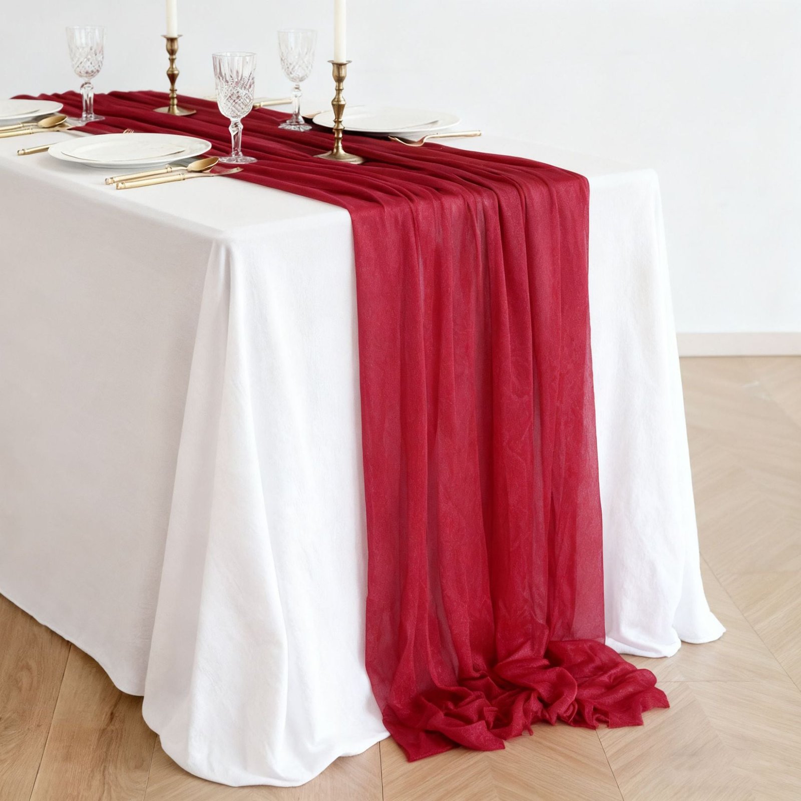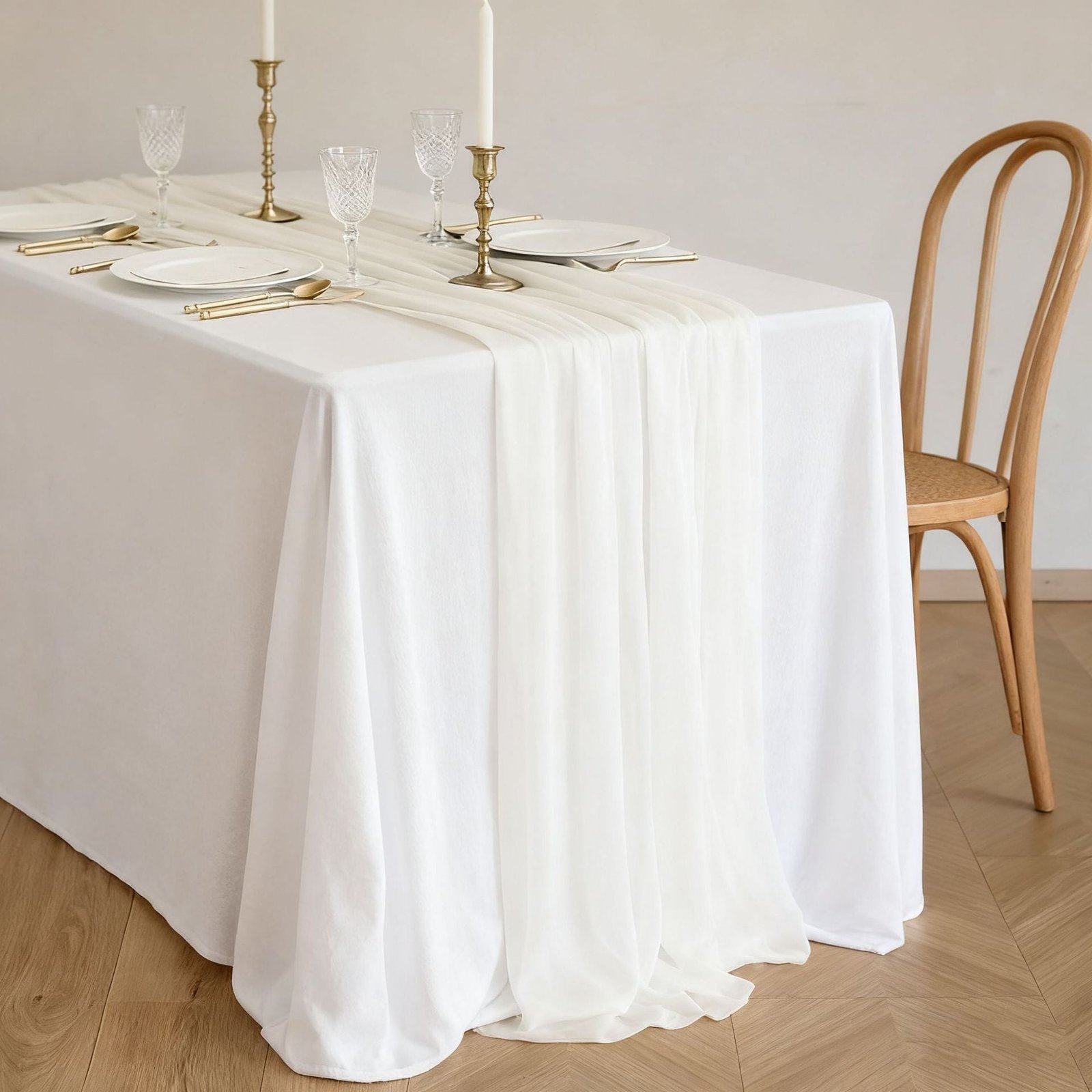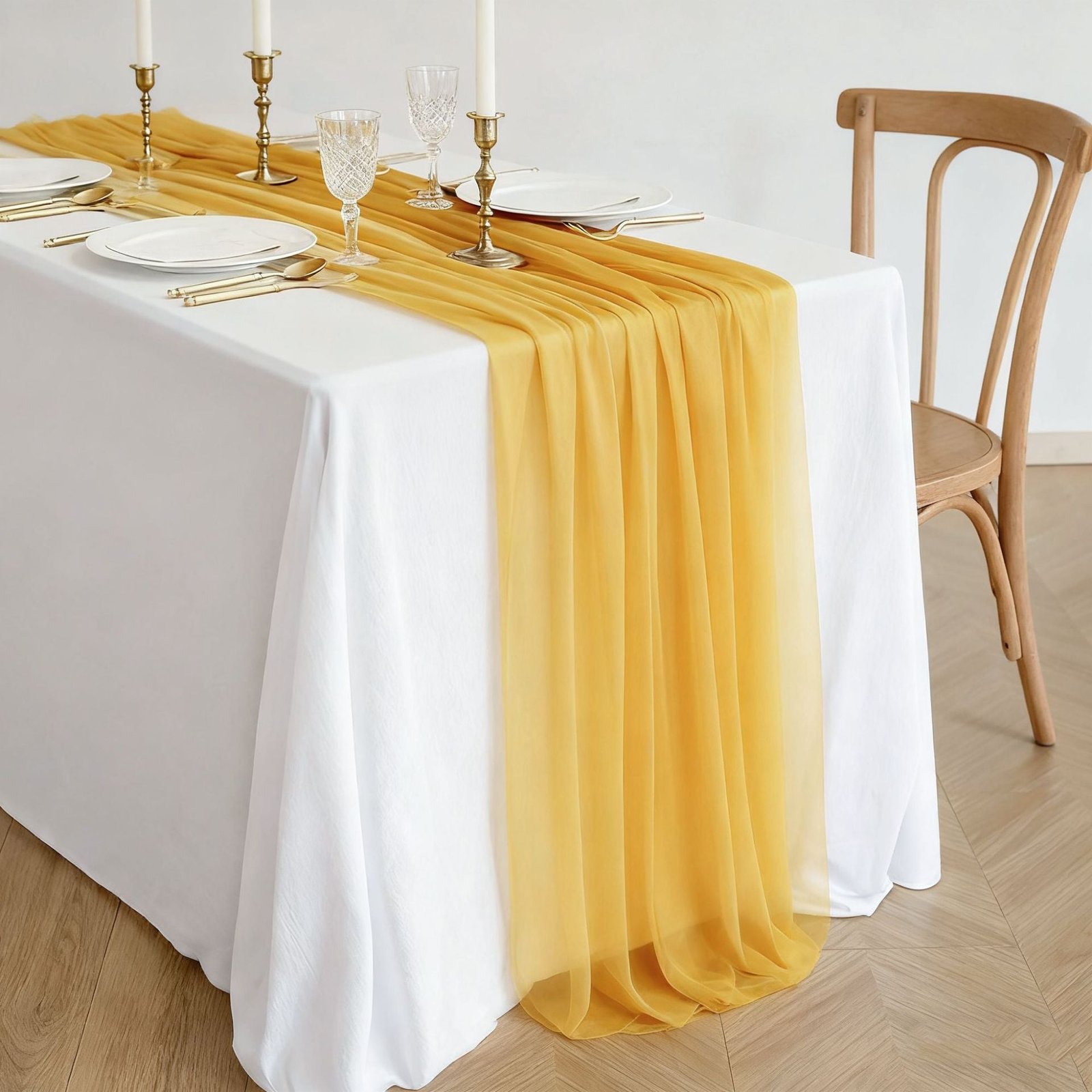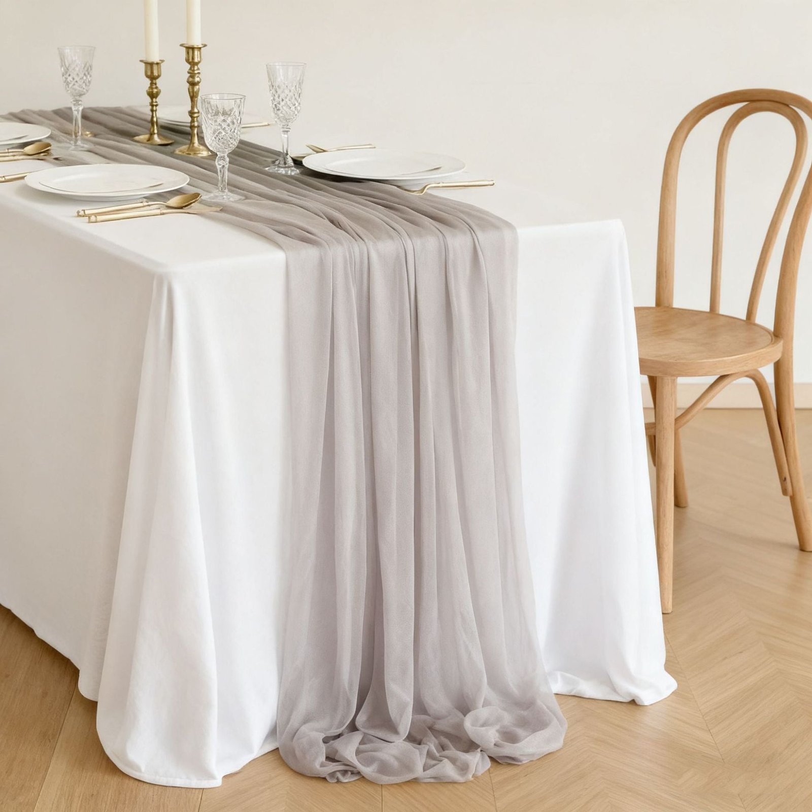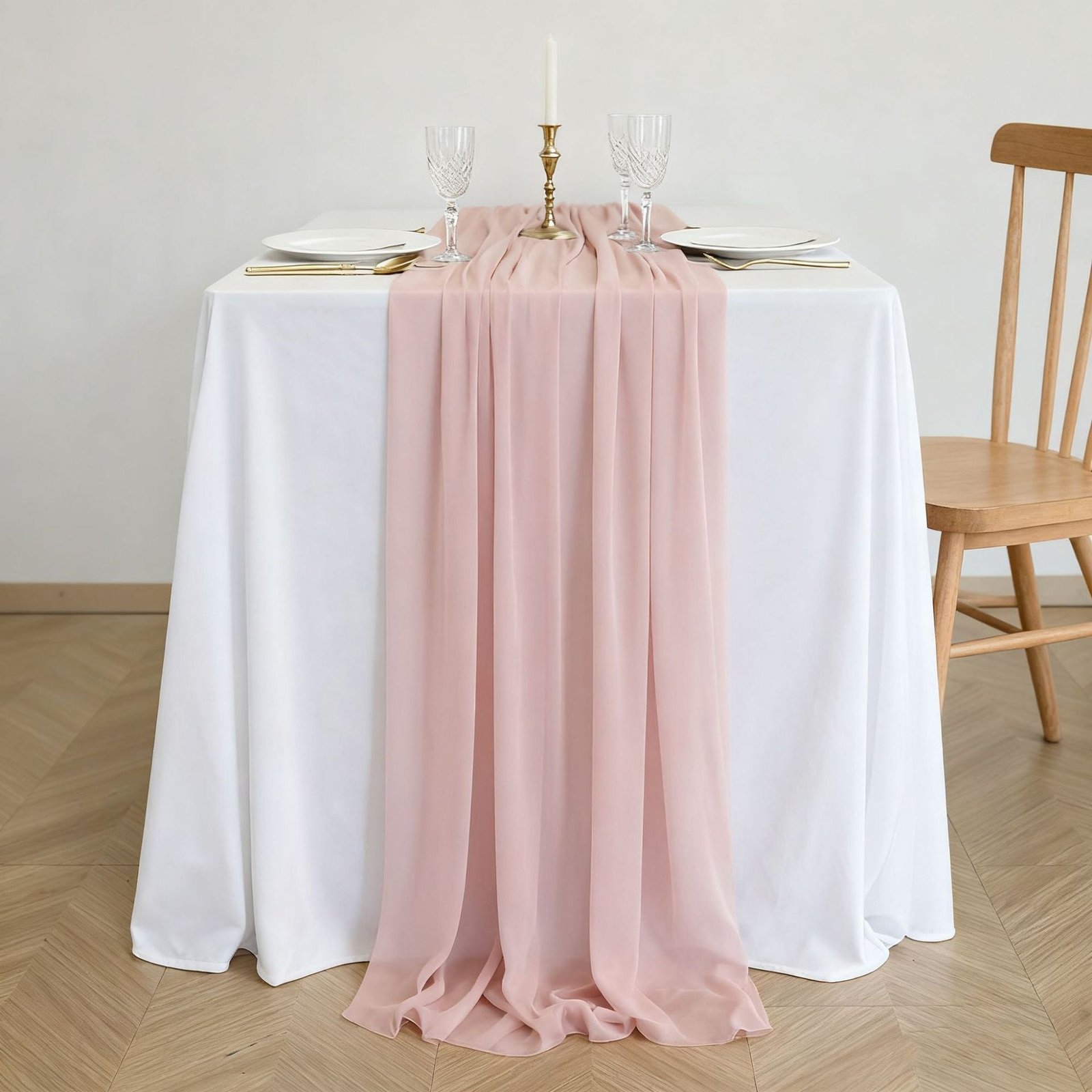 Overview: Elevate weddings, birthdays, and events with this lightweight polyester chiffon table runner. It drapes gracefully, resists wrinkles, and comes in a wide range of colors and sizes to suit Nordic-inspired decor. Customization is available for venues and themes.