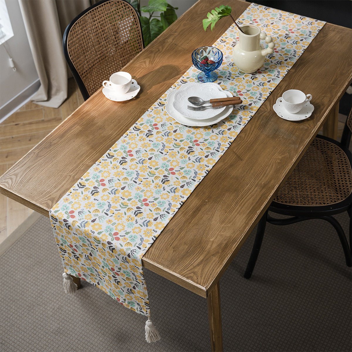 Enhance every table with these floral tassel runners. Made from a durable polyester-cotton blend for easy care, they bring timeless style to dining tables in homes and hospitality spaces. Available in multiple sizes to suit both intimate and larger settings.