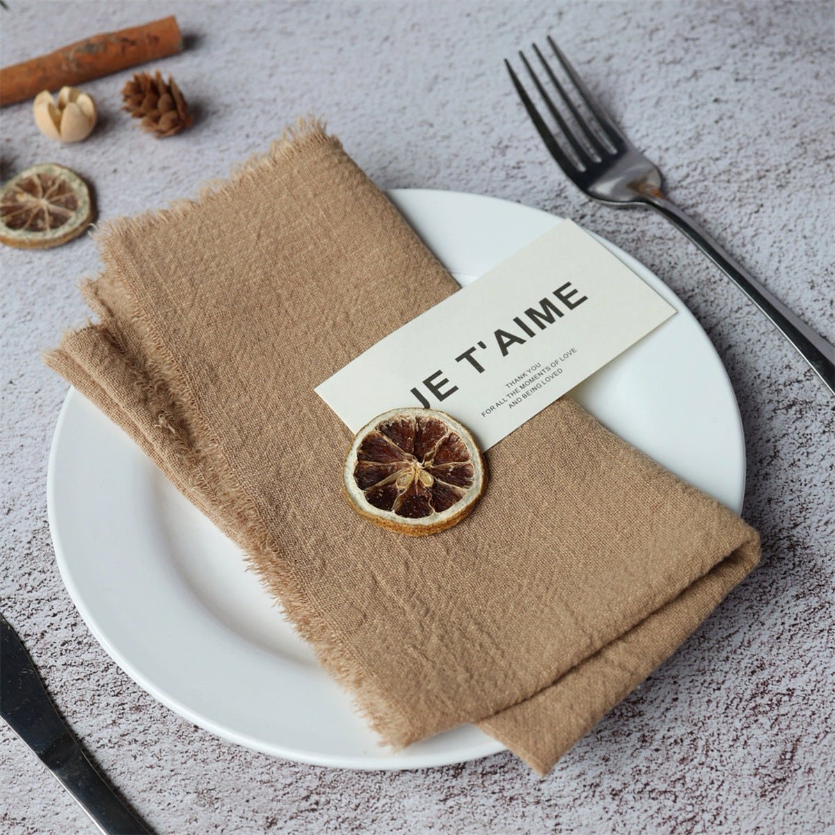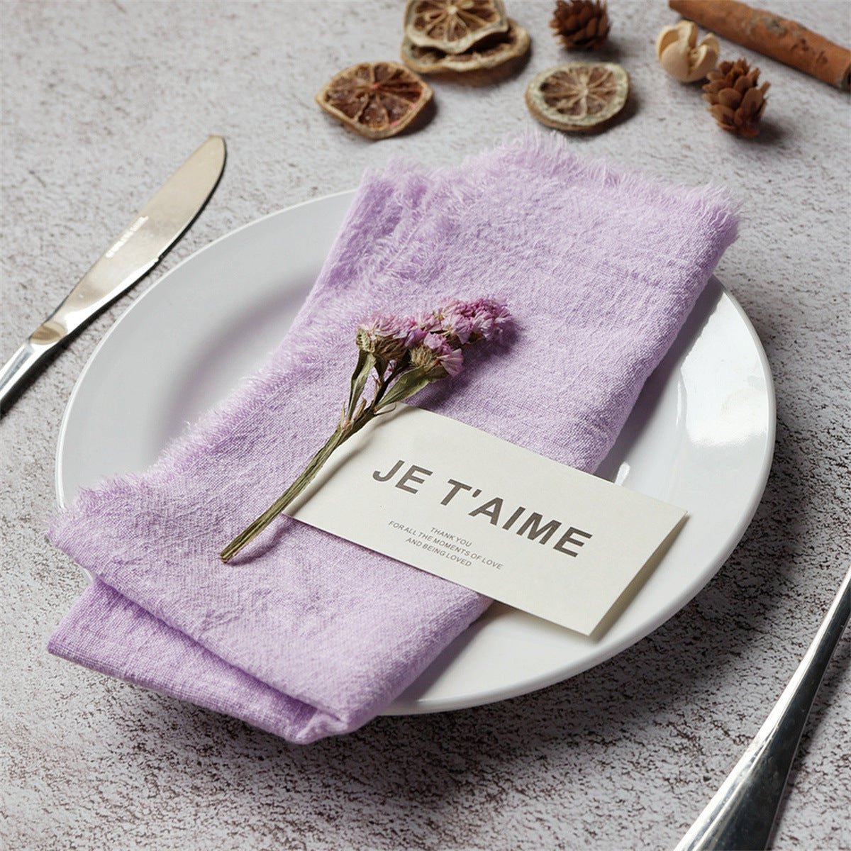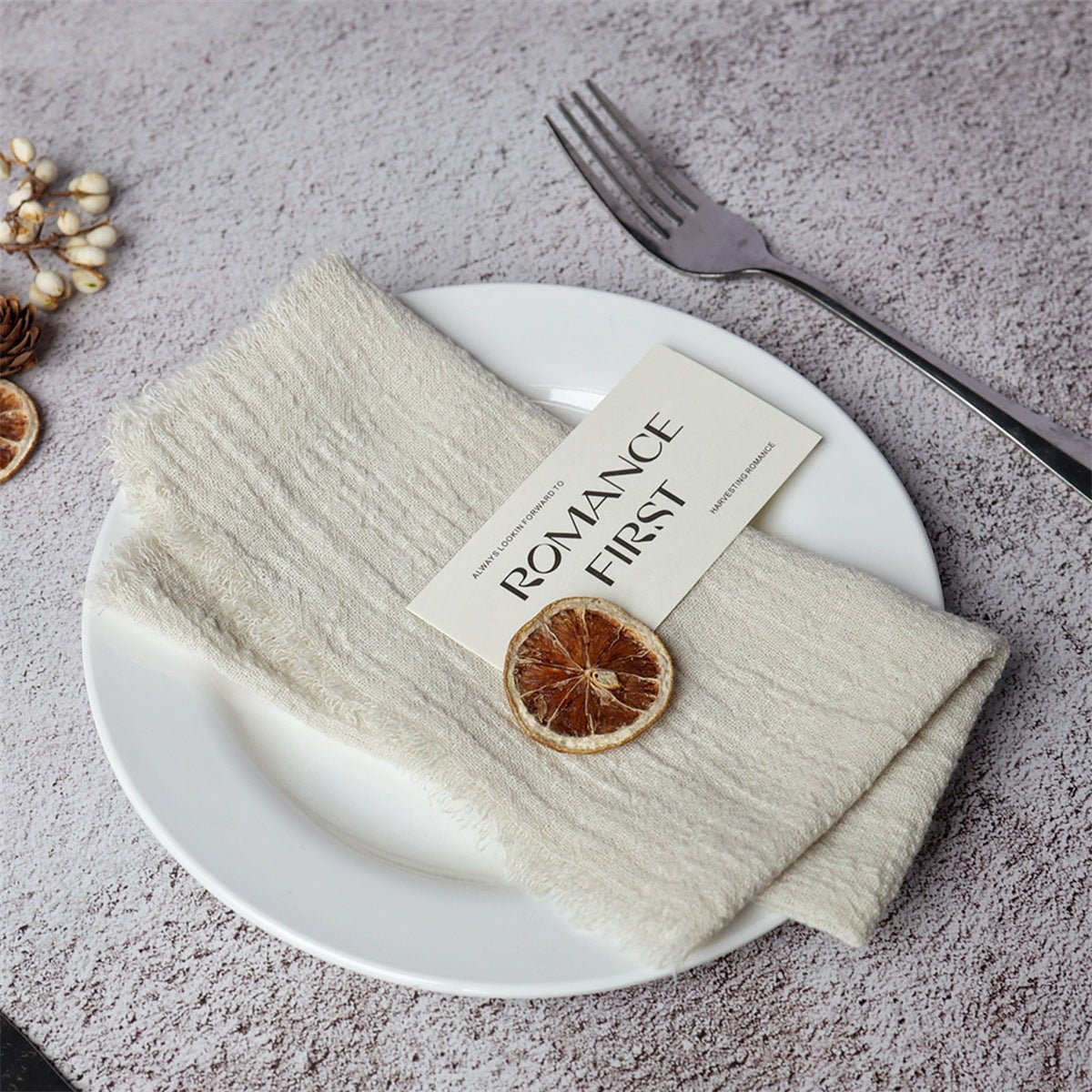 Summary: These fringed cotton napkins bring timeless texture and boutique charm to Nordic-inspired tables. Crafted from 100% cotton, they drape softly, resist wear, and wash easily, making them suitable for everyday use or elegant events. Customizable for weddings, home entertaining, and hospitality settings.