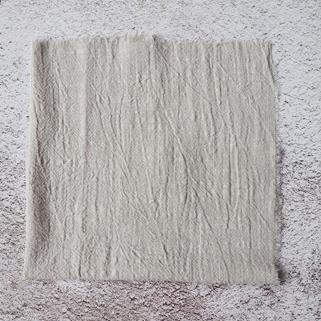 100% cotton slub fabric with a soft, textured feel and fringed edges.