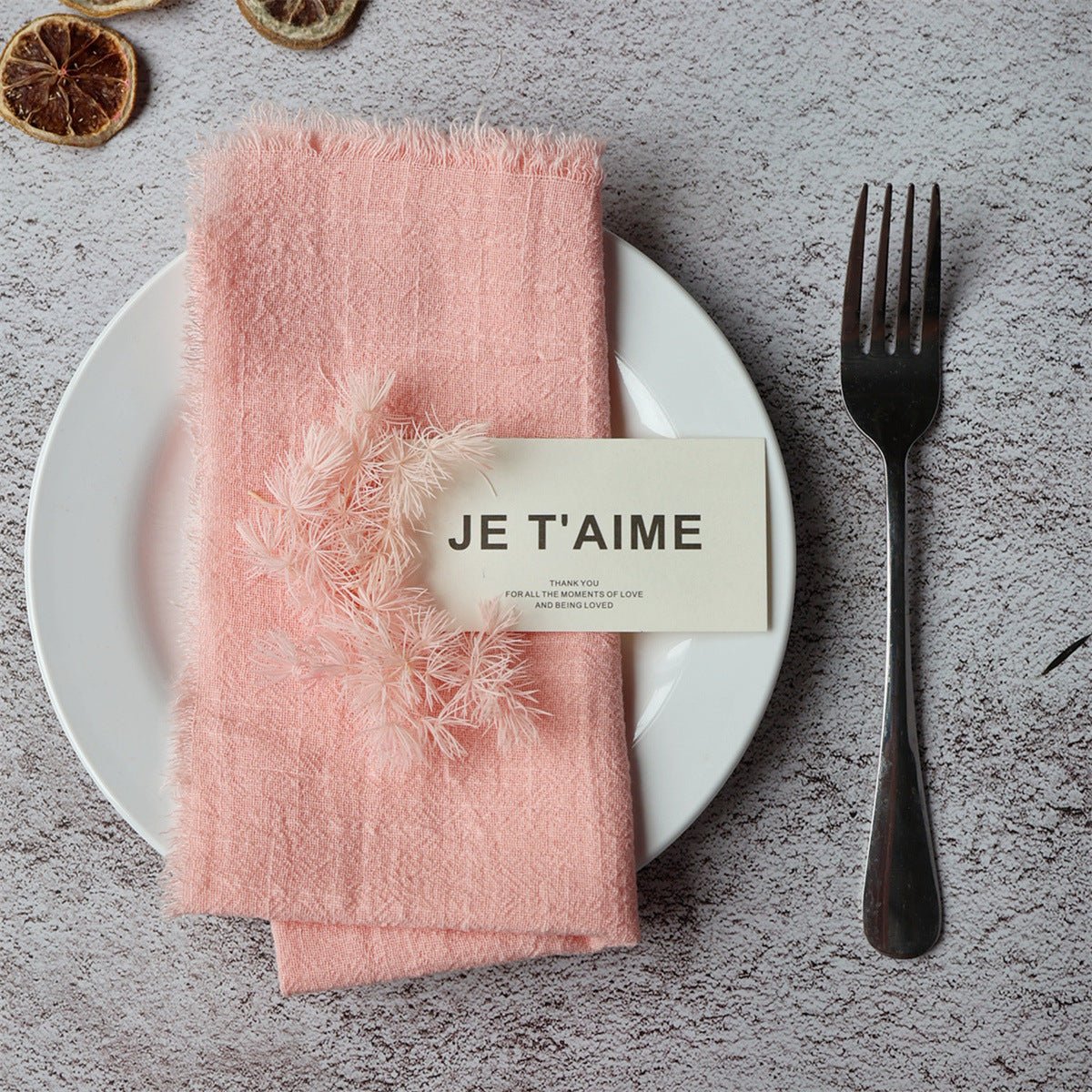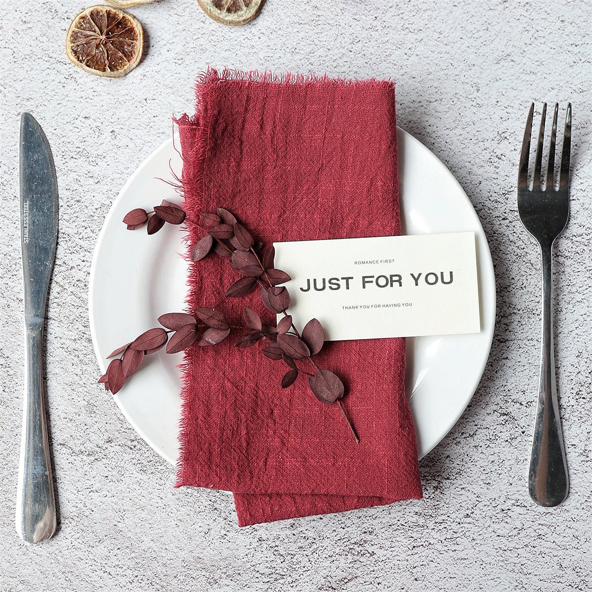 These fringed slub cotton napkins combine natural texture and casual elegance for Nordic-inspired weddings and everyday dining. Durable, absorbent, and easy to care for, they offer a wide color range and customizable branding to suit boutique retailers, event planners, and hospitality settings.