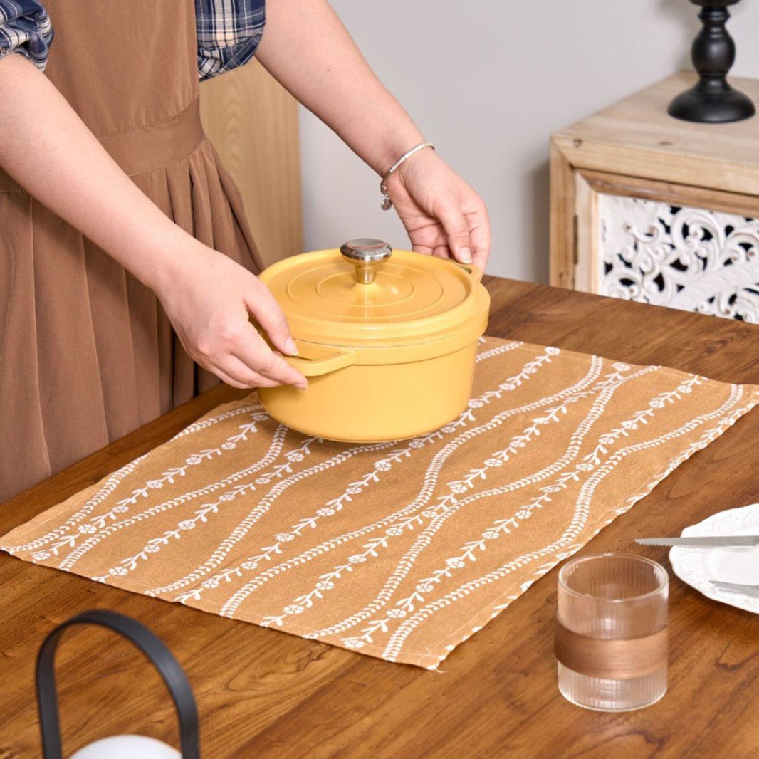 All-Season American country style table linen that adds rustic charm to everyday dining and special occasions. Crafted from a durable cotton-polyester blend for color retention and easy care, it offers versatile styling and is customizable to suit your space and branding.