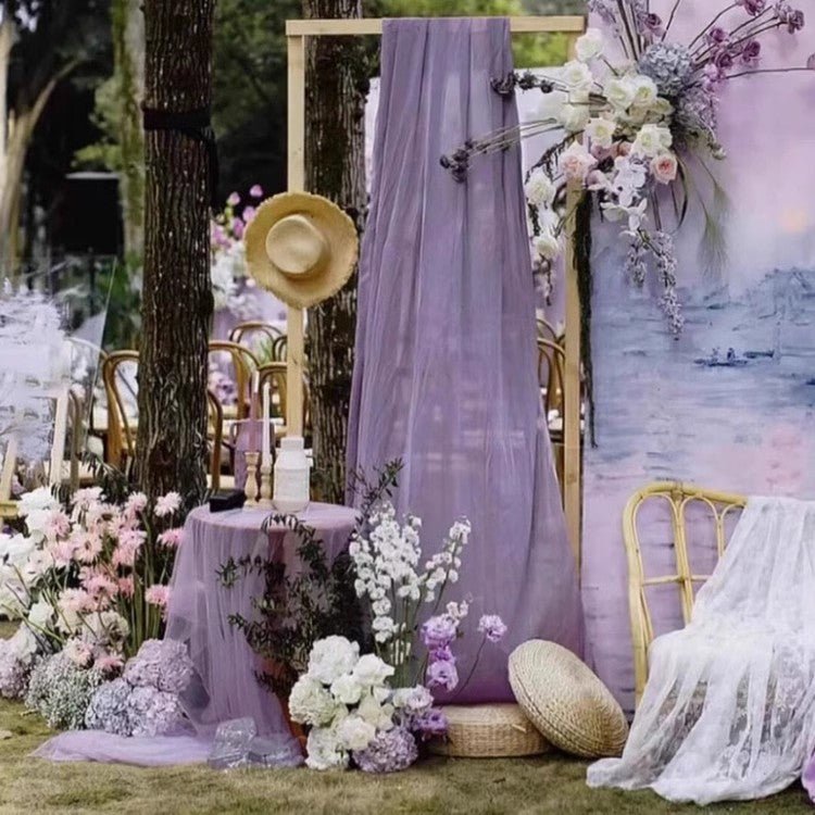 Design: European-inspired Swiss net backdrop for stage and outdoor lawn decor