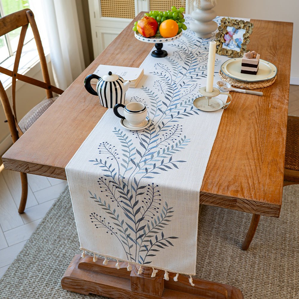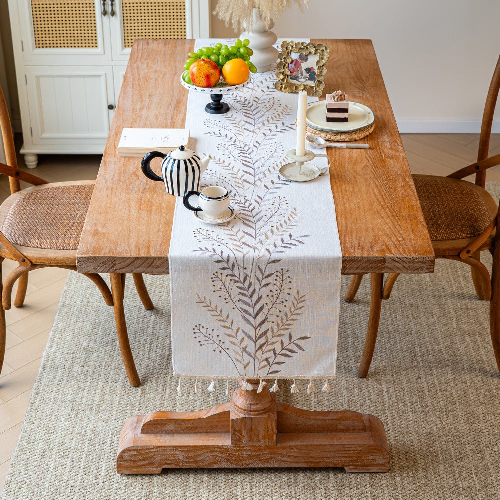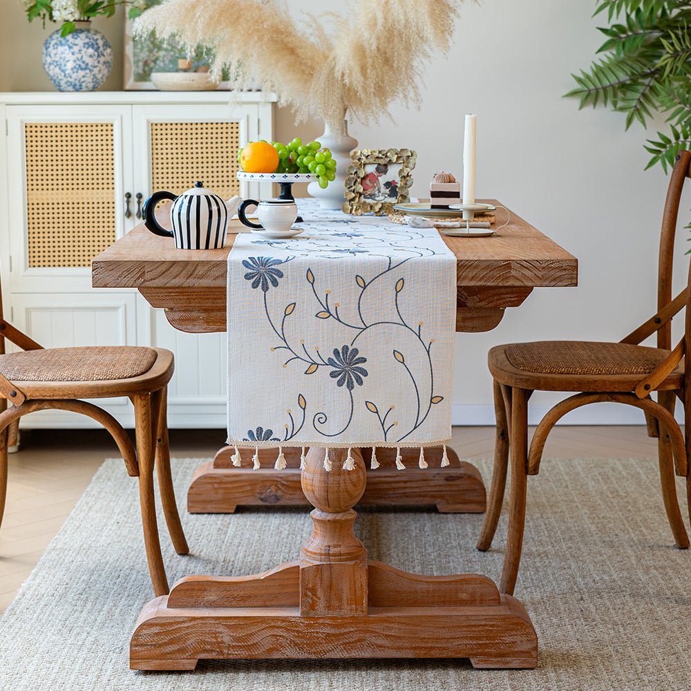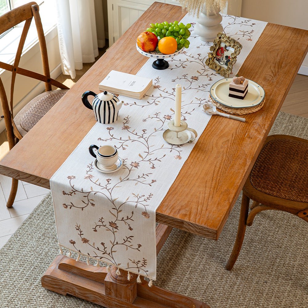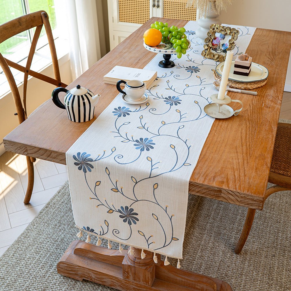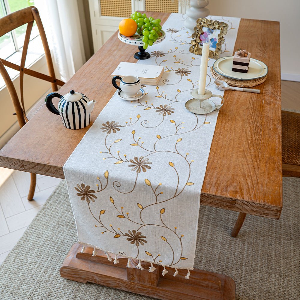This embroidered floral table runner is made from durable polyester with decorative tassels and a breathable weave. Available in multiple lengths and Nordic-inspired patterns, it protects surfaces while adding handcrafted charm to dining rooms, consoles, and events.