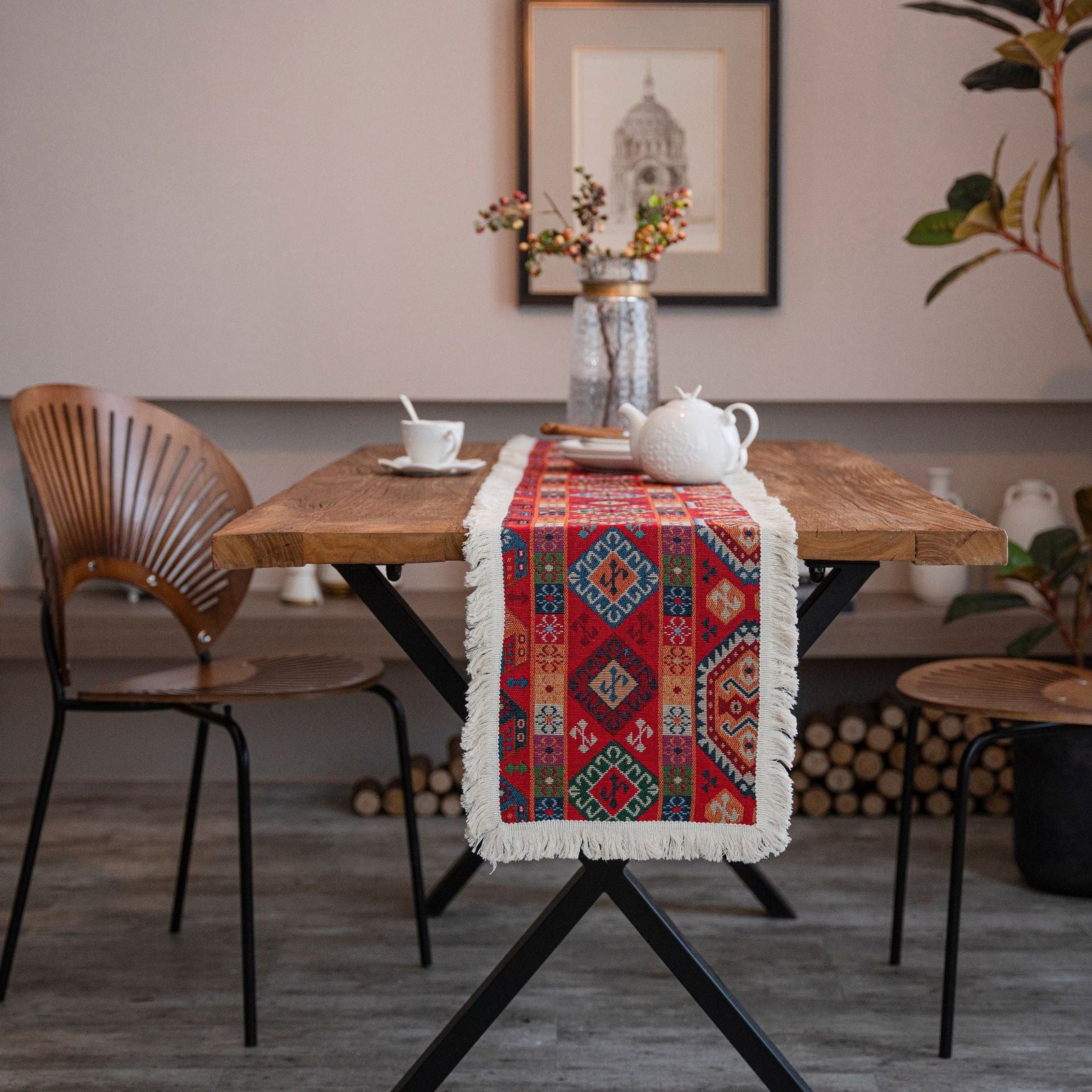 Overview This table runner features a sunflower jacquard pattern with white tassels. Crafted from a cotton-linen blend, it adds an inviting American-style touch to dining spaces, living rooms, and entryways. Available in multiple sizes and matched placemats for a coordinated look.