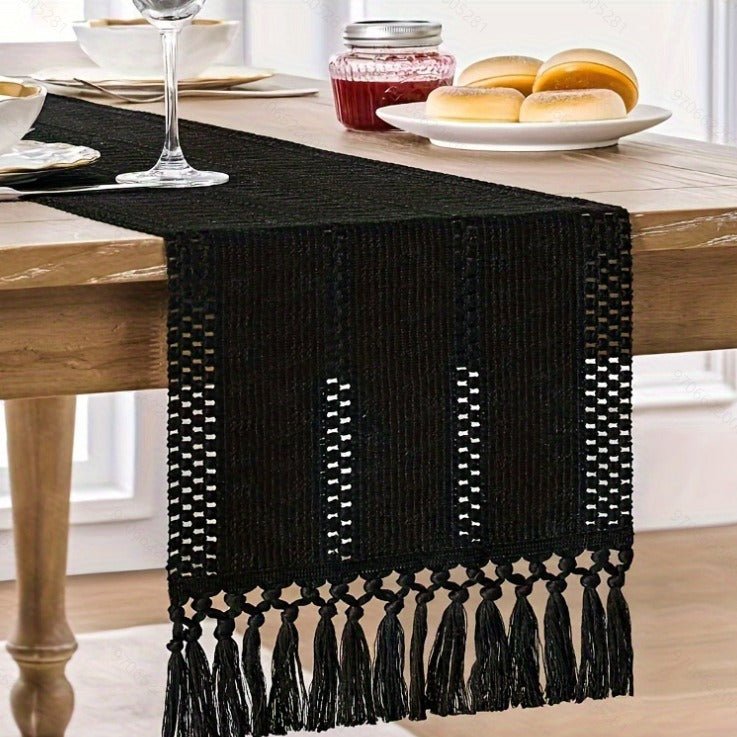 Elevate your dining space with this premium linen cotton table runner. The tied tassel fringe adds a touch of luxury, while a wide size range and easy care make it ideal for everyday meals and special occasions in homes, restaurants, and boutique venues.