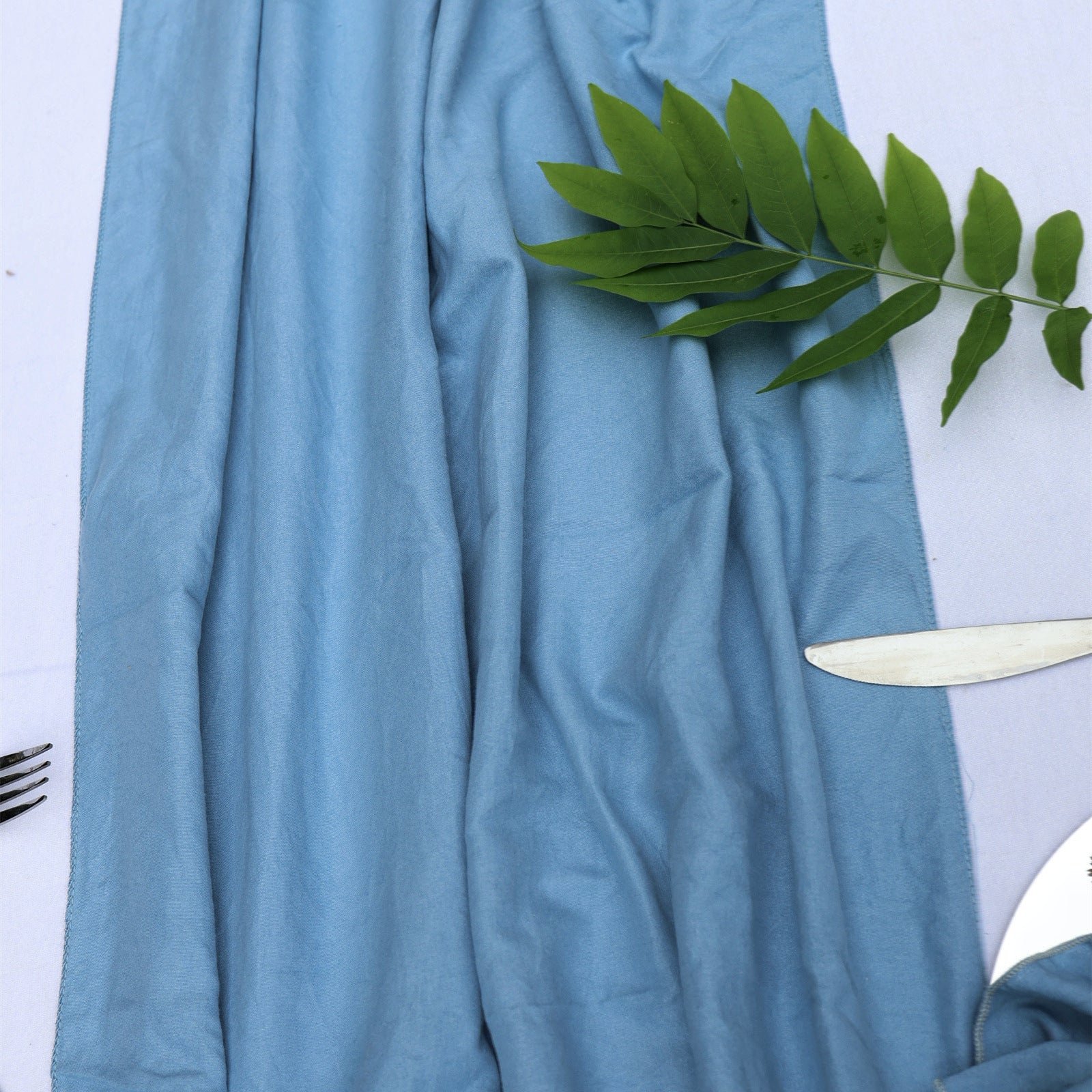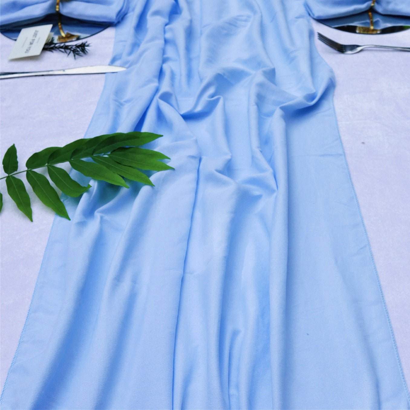 Light, airy gauze texture with a soft drape for an elegant table presentation.