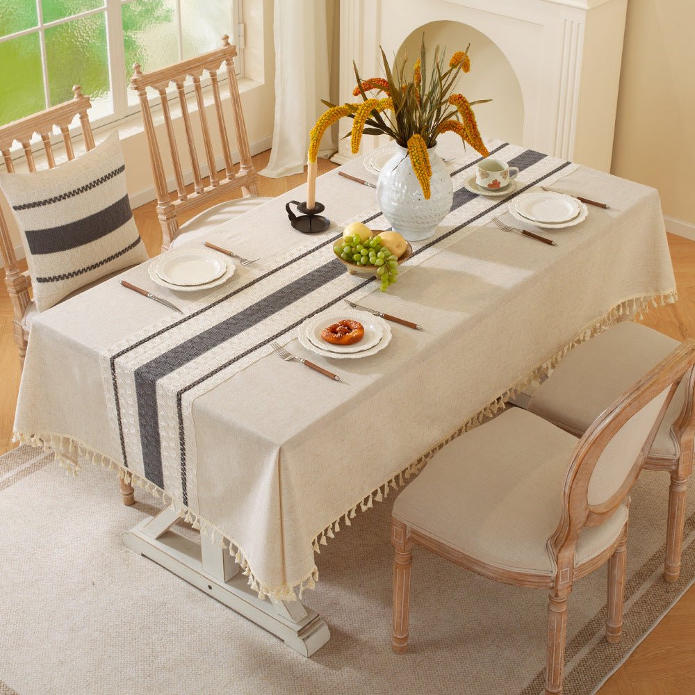 Summary: Elevate your dining setup with a versatile patchwork stripe tablecloth. Durable polyester, easy to clean, and available in multiple sizes and colors, it blends contemporary style with practical protection for everyday meals and special gatherings.