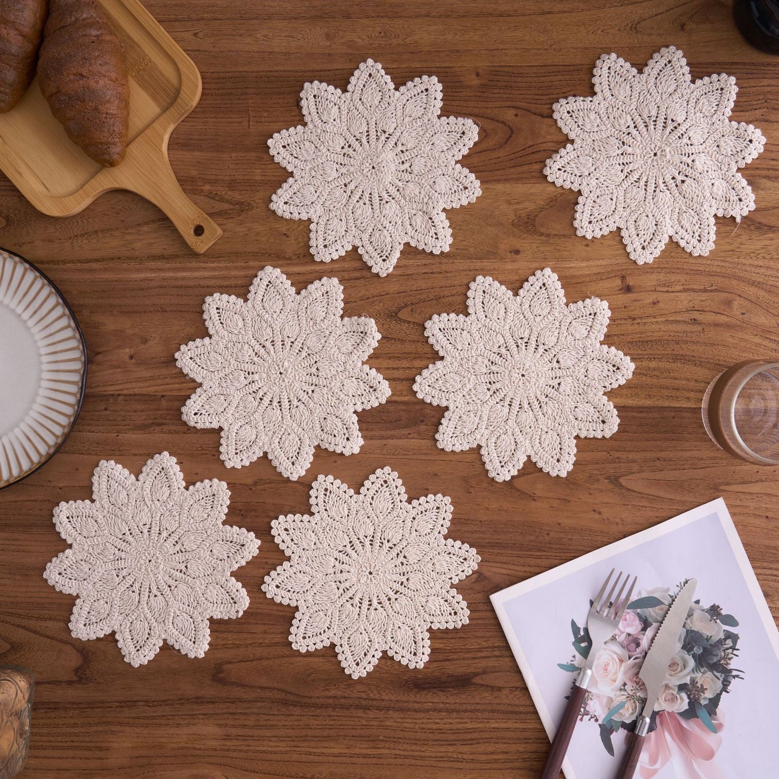 These handmade crochet cotton tea coasters add cozy charm to any table. The solid colors coordinate with modern and traditional decors, while absorbing heat and protecting surfaces. Lightweight and durable, they suit daily tea routines or small gatherings.